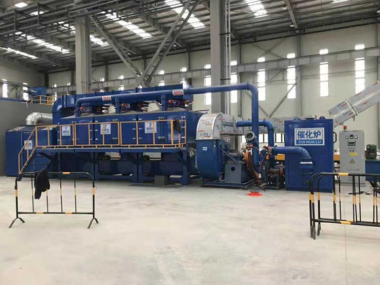 根據(jù)現(xiàn)場(chǎng)情況,設(shè)計(jì)催化燃燒方案如下所示,廢氣處理能力為滿足1套30000風(fēng)量的噴漆烤漆房的環(huán)保處理達(dá)標(biāo)排放方案,并能保障噴漆,烤漆房的通風(fēng)不受影響;采用吸附濃縮+催化燃燒組合工藝,整個(gè)系統(tǒng)工作過程封閉循環(huán),不產(chǎn)生二次污染,設(shè)備投資及運(yùn)行費(fèi)用低。吸附材料使用蜂窩狀活性炭(不低于1.1m3/箱)。使用優(yōu)質(zhì)貴金屬鈀、鉑附著在蜂窩狀陶瓷板上作為燃燒催化劑,貴金屬含量不低于300g,催化燃燒凈化率≥97%。催化燃燒室材質(zhì)采用>5mm厚碳鋼。控制系統(tǒng)采用微機(jī)集中控制系統(tǒng),催化燃燒系統(tǒng)具有自診斷功能,異常報(bào)警及自動(dòng)停機(jī)功能,系統(tǒng)必須具備主動(dòng)安全保護(hù)措施,符合消防安全要求。催化燃燒系統(tǒng)的整體設(shè)置能夠滿足節(jié)能降耗的要求。本凈化設(shè)備尾氣的大氣染污源***高允許排放標(biāo)準(zhǔn)參照四川省固定污染源大氣揮發(fā)性有機(jī)物排放標(biāo)準(zhǔn)DB51-2377-2017