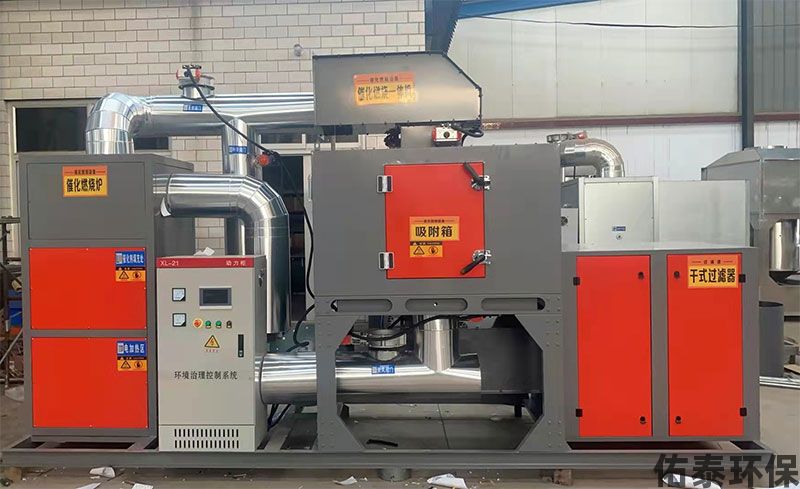 活性炭吸附箱體在有機廢氣吸附達到飽和之后,需要將活性炭中的廢氣脫附下來,然后進入催化燃燒室燃燒。在將廢氣進行催化燃燒凈化的過程中,廢氣經管道由風機送入熱交換器,將廢氣加熱到催化燃燒所需要的起始溫度。經過預熱的廢氣,通過催化劑層使之燃燒。由于催化劑的作用,催化燃燒中廢氣燃燒的起始溫度約為250~300攝氏度,遠遠低于直接燃燒法的燃燒溫度650~800攝氏度,脫附后的高溫氣體達標再次進入熱交換器,經換熱冷卻,以較低的溫度經風機排入大氣中。