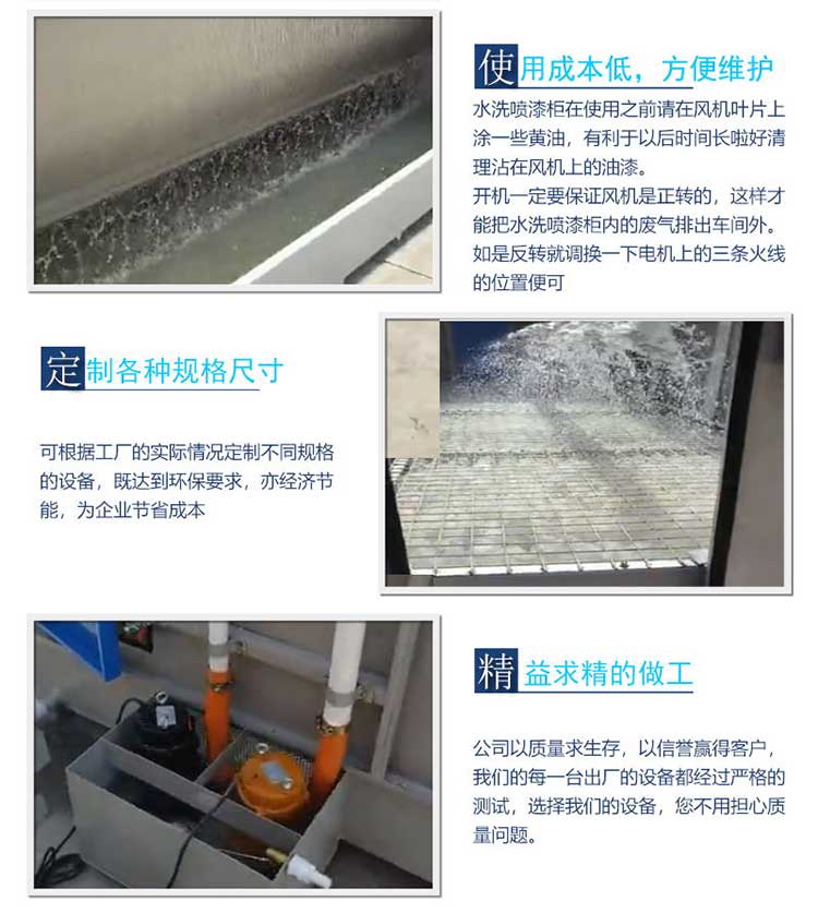 帶噴淋功能的水簾柜,這是在普通水簾柜的后面,加了一層噴淋及一層隔板。從而提高漆霧處理效率。