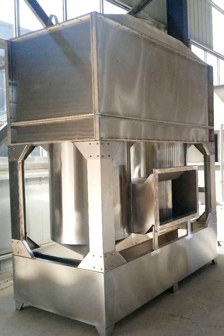 3、2萬風量方形旋流噴淋塔尺寸為L2.4*W1.3*H3米,有6個旋流筒。一個水泵,一般使用pp板或201不銹鋼制作。