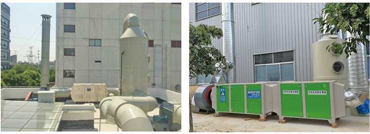 四、廢氣處理設備安裝完成后,有效的去除了噴漆房車間的廢氣,改善了工作環境,達到了國家環保標準,工程安裝圖片如下所示。
