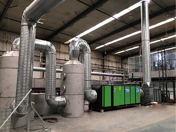 2、等離子體工業(yè)廢氣處理技術(shù)已研制出標(biāo)準(zhǔn)化廢氣治理設(shè)備,利用所產(chǎn)生的高能電子、自由基等活性粒子激活、電離、裂解工業(yè)廢氣中的各組成份,使之發(fā)生分解,氧化等一些列復(fù)雜的化學(xué)反應(yīng),再經(jīng)過多級(jí)凈化,從而消除各種污染源排放的異味、臭味污染物,使有毒有害氣體達(dá)到低毒化、無毒化,保護(hù)人類生存環(huán)境。
