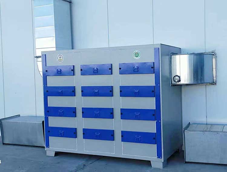 二層為活性炭吸附,活性炭具有合理的孔隙結構,良好的吸附性能,機械強度高,易反復再生,造價低等特點;用于有毒氣體的凈化,廢氣處理,工業和生活用水的凈化處理,溶劑回收等方面?;钚蕴吭谶\輸過程中,防止與堅硬物質混狀,不可踩、踏,以防炭粒破碎,影響質量。亦要防止水浸,因水浸后,大量水充滿活性空隙,使其失去作用。另外避免焦油類物質帶入活性炭床,以免堵塞活性炭空隙,使其失去吸附作用。