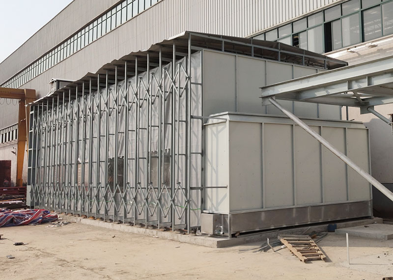 2.1、 伸縮移動噴漆房:是由框架主體、阻燃PVC布、防爆照明等形成的半封閉空間,和廢氣凈休設備一起形成涂裝作業的工作場合。