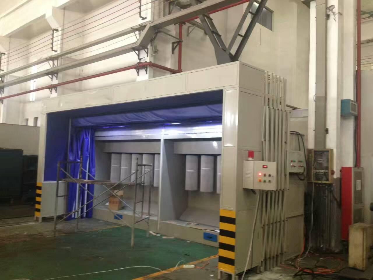 1、移動(dòng)伸縮房固定端配上立式吸塵柜,可有效的吸收打磨所產(chǎn)的的粉塵。