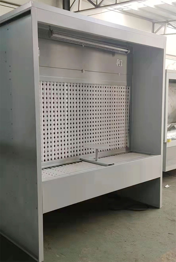 具體尺寸 | 箱體尺寸長2.0米,寬1.0米,高2.3米,臺面高度0.75米,臺面深度0.5米。臺面上附V型過濾紙。臺面帶小轉(zhuǎn)盤。吸附層使用V型過濾紙。抽屜層過濾使用漆霧過濾棉。 防爆燈一盞。 | ||