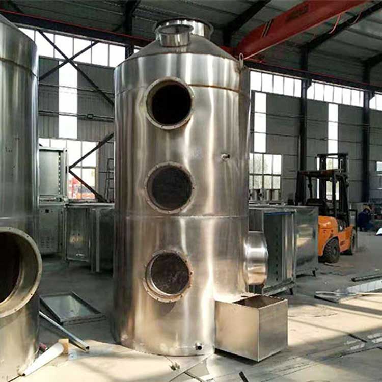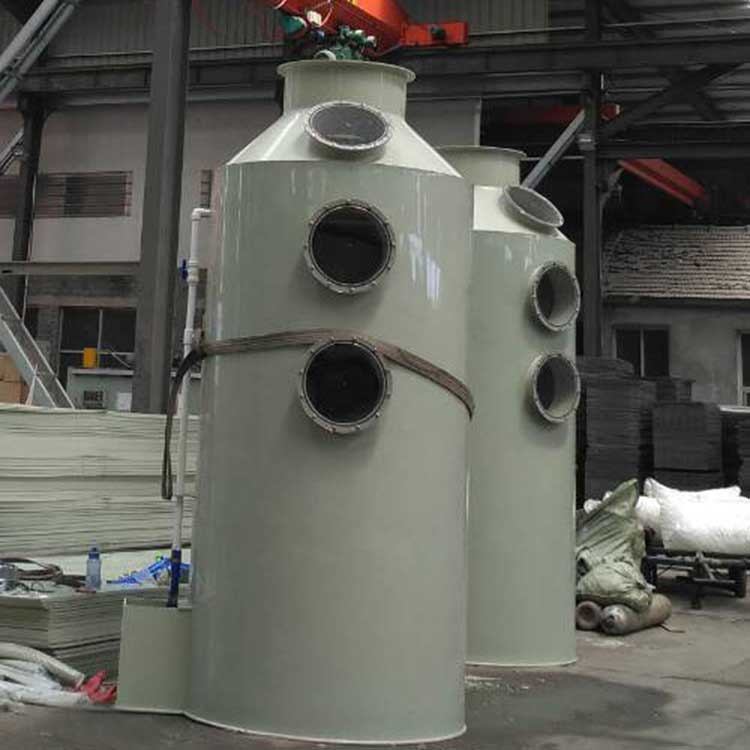 噴淋塔工作時氣、液逆流運行,排出的廢氣從底部入口進入塔體,經過填料層和自下而上的水霧噴淋之后,***后通過風機從頂部管道出口排出。噴淋塔里面循環水通過塔頂的液體分布器,均勻噴入填料層,沿填料層表面向下流到塔底,由于上升廢氣和下降吸收劑在填料層的不斷接觸,上升氣流中的溶質濃度越來越低,在塔頂達到吸收要求后排出塔外。相反,下降液中的介質濃度越來越高,在塔底達到工藝條件要求,然后排出塔外。噴淋塔用于降低廢氣溫度,并處理灰塵和相對較大的顆粒。