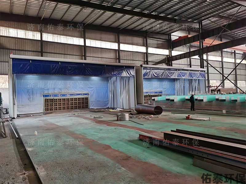 伸縮噴漆房是一種簡易處理漆霧、除塵的涂裝設備,伸縮噴漆房的使用解決了較大型工件移動困難的問題,在生產工藝上簡化了不斷用車間行車吊運大型工件來回周轉的工藝流程。